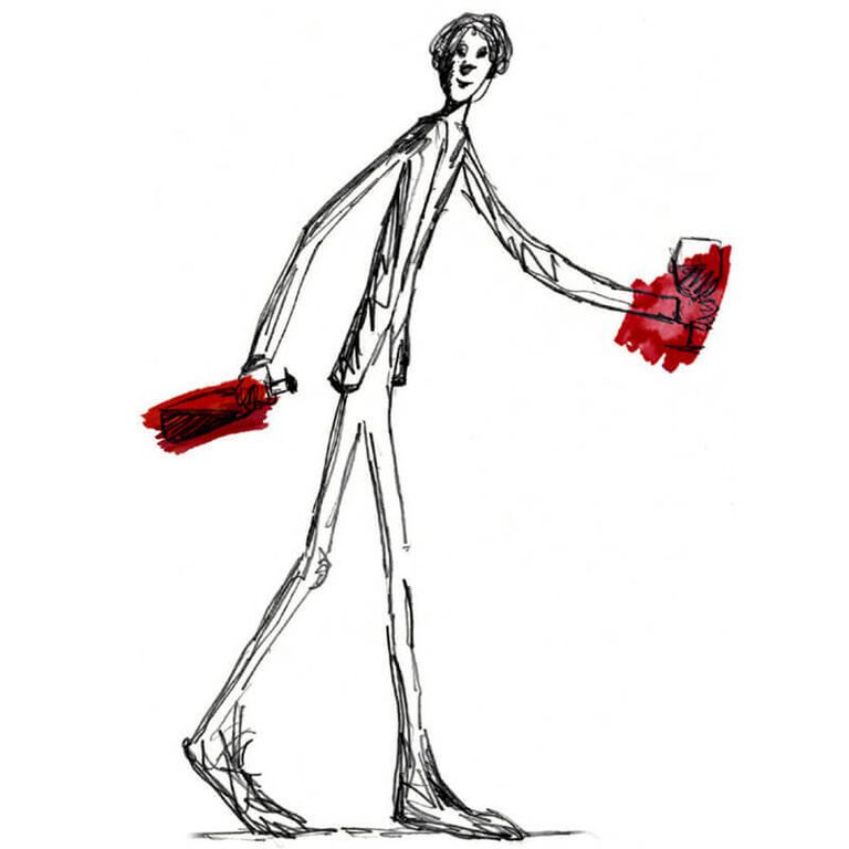 The name Gigiò is a nickname of Enzo’s childhood friend, Luigi. The skinny man that you see on the label is derived from a Giacometti drawing that Claire had before the couple met (not the original, of course!). From the time Claire and Enzo began daydreaming about starting a winery, they always thought this image would be the inspiration for a great label. Our first ever label, our Gigiò character was adapted to become more of a wine person, carrying a glass and a bottle of wine, as well as having a happy face. Our very first label, it was used for the only wine we made at the time (back in 2004). Now Gigiò is well-known amongst our customers as being our top, elegant, precious wine.